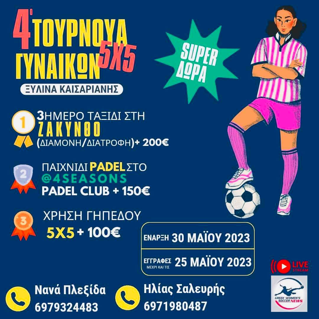 «Το τουρνουά είναι μια ποδοσφαιρική γιορτή για γυναίκες και κορίτσια , που διοργανώνουμε για τέταρτη συνεχομένη χρονιά στα Ξύλινα Καισαριανής. Πρόκειται για μια ιδέα κι ανάγκη που γεννήθηκε κατά τη διάρκεια της πρώτης καραντίνας, όταν παύτηκε κάθε αθλητική δραστηριότητα και θελήσαμε με αυτό το τουρνουά να επαναφέρουμε τα κορίτσια στο γήπεδο και στο ποδόσφαιρο που αγαπούν. Αφουγκραστήκαμε πόσο τους είχε λείψει το ποδόσφαιρό κι έτσι αποφασίσαμε να διοργανώσουμε ένα τουρνουά 5χ5 , αμιγώς γυναίκειο κι άκρως καλοκαιρινό. Είναι πλέον το καθιερωμένο καλοκαιρινό ραντεβού, έτσι αποχαιρετάμε την αθλητική σεζόν κι ετοιμαζόμαστε με τον καλύτερο τρόπο για τα μπάνια μας. Το μόνο που χρειάζεσαι είναι να είσαι γυναίκα και να αγαπάς το ποδόσφαιρο. Για να συμμετάσχεις αρκεί και να έχεις πεντάδα σου.»