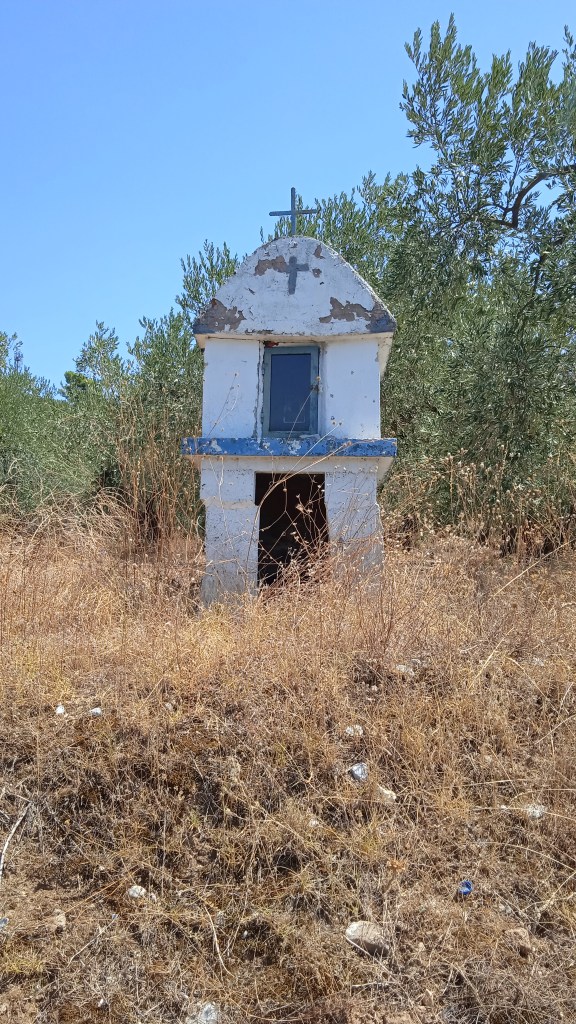 Σχεδόν μόνοι μας, ίσως λόγω των φυκιών που η αλήθεια είναι ότι είναι πολλά, αφού τα προσπεράσαμε απολαύσαμε κολύμπι σε κρυστάλλινα νερά. Ένα μικρό ιστιοφόρο, μια μισοβουλιαγμένη βάρκα, μια σκουριασμένη αλυσίδα, ένα εγκαταλειμμένο ναΐδριο, πινελιές που συμπληρώνανε τη μαγεία του ήρεμου και νωχελικού τοπίου…