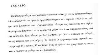 Πιο κάτω διαβάζουμε στο ίδιο βιβλίο ότι το Α΄ Δημοτικό Σχολείο κτίζεται με πρωτοβουλία κτηματιών και μικροεπιχειρηματιών στην σημερινή του θέση σε οικόπεδο του κτηματία της περιοχής Θεοδώρου Τατάκη την περίοδο 1925-1930 ο οποίος το έκανε δωρεά.