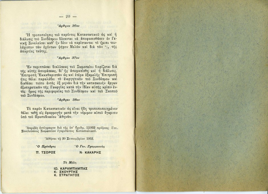 Δημοσιεύουμε μικρό μέρος από το ΚΑΤΑΣΤΑΤΙΚΟ ΑΓΡΟΤΙΚΟΥ ΣΥΝΔΕΣΜΟΥ ΑΓΙΟΥ ΔΗΜΗΤΡΙΟΥ (ΜΠΡΑΧΑΜΙ) που ορίζει τις σχέσεις των κατοίκων της περιοχής, αγροτών κατά το πλείστον, με τις εκτάσεις που καλλιεργούν εντός των ορίων της περιοχής συμπεριλαμβανόμενης και της περιοχής των Τραχώνων. Στο καταστατικό μπορούμε να δούμε ενδιαφέροντα στοιχεία από τη ζωή τους, τοπωνύμια, ονοματεπώνυμα και λοιπές εξαιρετικές λεπτομέρειες. Το γενικό συμπέρασμα είναι ότι οι πλειοψηφία των κατοίκων την εποχή του μεσοπολέμου (1932 χρονολογία ίδρυσης του Συνδέσμου) είναι αγρότες και κτηνοτρόφοι. Το χωρίον Αγ. Δημήτριος με τον επεξηγηματικό διακριτικό τίτλο Μπραχάμι είναι μια αμιγώς Αγροτική περιοχή.