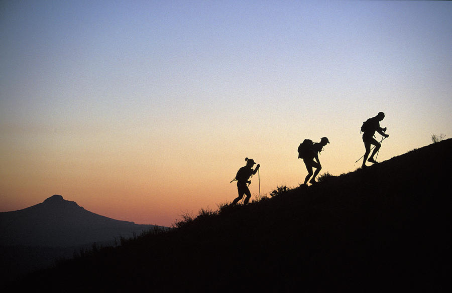 Two Men And One Woman Run Up A Mountain is a photograph by Corey Rich which was uploaded on March 18th, 2018.