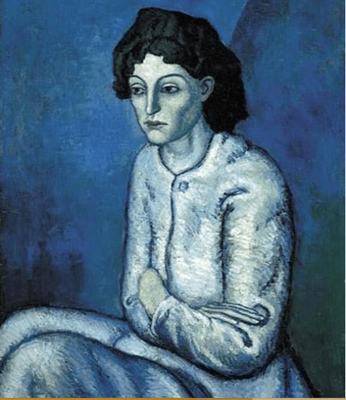 Ο πίνακας, ανήκει στην μπλε περίοδο του καλλιτέχνη, και είναι ένας από τους πιο γνωστούς του. Σε πρώτη φάση δείχνει «άδειος». Η γυναίκα με σταυρωμένα τα χέρια, κοιτάζει στο κενό. Η αρνητική στάση του σώματός της, με τα κλειδωμένα χέρια της, την κάνει να δείχνει κλειστή και μυστηριώδης. Η Μπλε ή Γαλάζια περίοδος του Πικάσο (1901-1904), χαρακτηρίζονται από το μπλε χρώμα ή αποχρώσεις του, και συμβολίζουν μία συναισθηματικά φορτισμένη περίοδο της ζωής του.