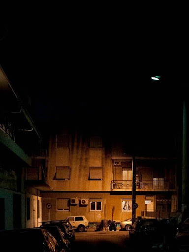 Οἱ δρόμοι λασπωμένοι, κίτρινα φῶτα, ἔβρεχε