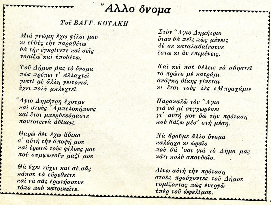 Στο Μπραχάμι μιας άλλης εποχής… Posted στο 30/01/2024 από chrispipin in Φτιάξε μου τη μέρα // 0 Comments … αλλαγή ονόματος – στιχούργημα υπό τον τίτλον « Άλλο όνομα» από την Ελεύθερη Γνώμη της 30 Νοεμβρίου 1976 ❀❀❀ Κοινοποιήστε:Tweet Κλικ για αποστολή ενός συνδέσμου μέσω email σε έναν/μία φίλο/η(Ανοίγει σε νέο παράθυρο) Email Μου αρέσει! Φόρτωση... Σχετικά Ελεύθερη ΓνώμηΜπραχάμιΜάκης Παπούλιας
