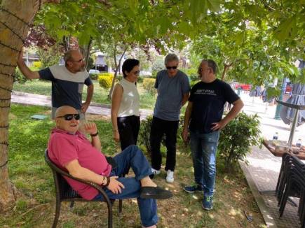 Είναι σαν να βρίσκονται στο κέντρο της δίνης του Μπραχαμίου που πότε τους ρουφάει στο παρελθόν του και πότε τους εξακτινίζει στο μέλλον. Υπάρχει μια αύρα στην ατμόσφαιρα που μπορεί να την υποβάλλει η βαριά σκιά του ναού. Καμμιά φορά ξεχνιέμαι και χαζεύω τις αρχιτεκτονικές λεπτομέρειες. Αχ, σκέφτομαι τι ωραία θα ήταν αυτή η εκκλησία σε κάποια plaza της Ευρώπης. Συζητήσεις, λοιπόν, επί παντός επιστητού για διάφορα θέματα, πολιτική με τις απαραίτητες εντάσεις, νέα της τοπικής κοινωνίας, αναμνήσεις, συμφωνίες, επαγγελματικά, όνειρα, σχέδια, απ’ όλα έχει ο μπαξές του Κώστα, πίσω από το Ιερό…