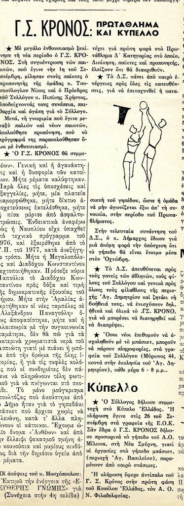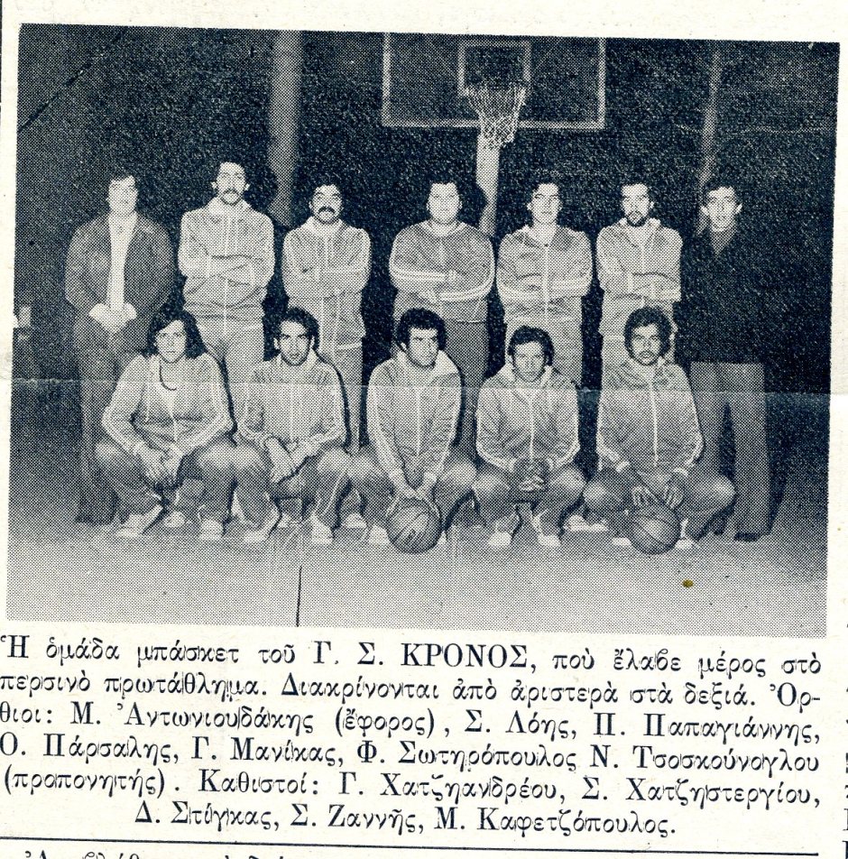 «…Tον Oκτώβριο του 1976 ιδρύθηκε ο Γυμναστικός Σύλλογος Kρόνος, ομάδα