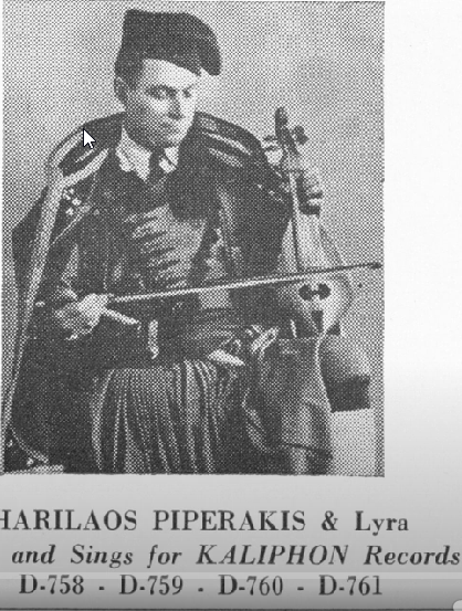 Όπως οι λυράρηδες Δημήτρης Καντεράκης, Δημήτρης Απόκης και ο Λαουτιέρης Κώστας Βουράκης καθώς κ ο τραγουδιστής Γεώργιος Περδικάκης οι οποίοι κατάγονταν και αυτοί από τον Αποκόρωνα του Ν Χανίων . Η συμβολή των οποίων ήταν καθοριστική για τη διάδοσή του κρητικού τραγουδιού . Αυτό όμως που ξεχώρισε τον Πιπεράκη ήταν ότι ξεπέρασε τους ήχους της Κρητικής μουσικής και έπαιξε μελωδίες,τραγούδια και οργανικά απ’όλα τα σημεία του πλανήτη . Οι δίσκοι του απευθύνονταν σε ελληνικό και ξένο κοινό . Γιατί συγκινούσε όλες τις καρδιές. Στην Αμερική τον αποκάλεσαν Παγκανίνι της λύρας ,άλλοι μαύρο διάβολο και άλλοι ως θεό της μουσικής. Έκανε γνωστή σόλο τον κόσμο την κρητική μουσική . Τον Δεκέμβριο του 78 μετά από 70 χρόνια μουσικής παρουσίας έφυγε στον Σαν Φρανσίσκο 85 ετών. Ακούμε το τραγούδι «έσπασες τα πιάτα » ηχογράφηση 1926. Ακολουθεί το «Γουέστ» .Το Γουέστ είναι τυπογραφικό λάθος. Το σωστό ήταν «Ουέστ » παίζει Πιπεράκης κ Επαμεινώνδας Ασημακόπουλος λύρα και λαούτο αντίστοιχα. Ερμηνεύει ο Ασημακόπουλος. Και για τρίτο τραγούδι του Πιπεράκη επιλέγω τον «Κουμαριτζή» . Εμπνευσμένο από τις ελληνικές λέσχες που τα αθλήματα τους ήταν η χαρτοπαιξία-πόκα και το μπαρμπούτι.. Και τα τρία ως άνω τραγούδια είναι στο ρεμπέτικο κλίμα…