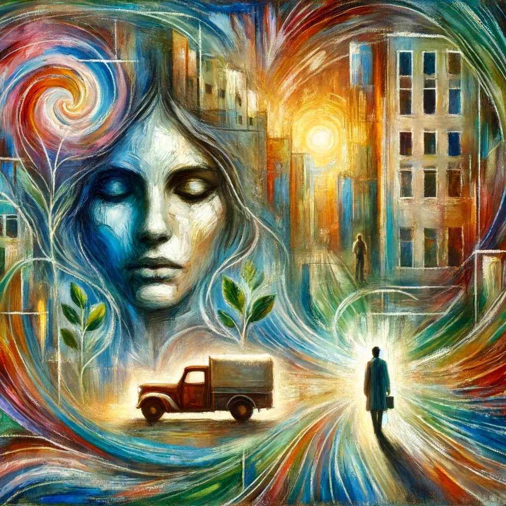 Σε μια πόλη όπου τα χρώματα ανακατεύονται με τη νοσταλγία, ζούσε μια γυναίκα με ψυχή πληγωμένη, με τραύματα που χαράκωναν το είναι της. Ο θρήνος του εαυτού της ήταν αόρατος στους άλλους, μα φαινόταν σαν φθαρμένη σκιά στον ουρανό της ύπαρξής της.