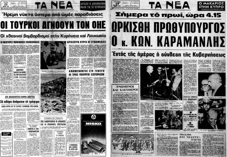 Το υπόλοιπο καλοκαίρι κύλησε πυκνό σε γεγονότα και μνήμες. Στην τηλεόραση σκηνές από πόλεμο και σκοτεινιασμένα πρόσωπα ξεριζωμένων. Μια γειτόνισσα φιλοξενούσε ζευγάρι Κυπρίων που είχε έρθει για διακοπές στην Ελλάδα. Το αγοράκι τους συνομήλικό μου. Τόσο κοντά ο πόνος! Μετά από λίγες μέρες, με την πτώση της χούντας και τον ερχομό του Καραμανλή, αισθάνθηκα τον κόσμο διαφορετικό. Οι γείτονες μιλούσαν διαφορετικά, εξέπεμπαν μια ελπίδα. Γείτονας, που εργαζόταν στο ξενοδοχείο Μεγάλη Βρετανία, μας μετέφερε το κλίμα ανάτασης που επικρατούσε, βλέποντας τους παλιούς πολιτικούς να κυκλοφορούν στην πλατεία Συντάγματος, αναβαπτισμένοι στον άνεμο της μεταπολίτευσης. Τον Αύγουστο, στο Λαγονήσι όπου είχαμε επιστρέψει, παρακολουθούσα τις συζητήσεις για τον 2ο Αττίλα. Στην εκκλησία το δεκαπενταύγουστο, περιφέρθηκε πανέρι για τους αδελφούς Κυπρίους κι ο κόσμος συνεισέφερε με την καρδιά του. Παρατηρούσα τον πατέρα μου, τον θυμόμουν σε άλλες περιπτώσεις να δίνει μικρά κέρματα. Ξαφνιασμένος τον είδα να βγάζει ολόκληρο πενηντάρικο. Ακολούθησε ο ερχομός του Ανδρέα. Στο αεροδρόμιο πήγαν ο πατέρας μου, η αδερφή του και μία γειτόνισσα. Την επόμενη μέρα προσπαθούσαμε να εντοπίσουμε τις φιγούρες τους στις φωτογραφίες της εφημερίδας.