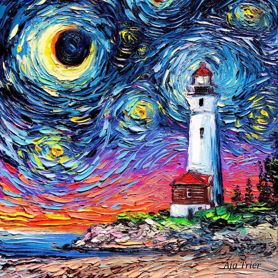 Lighthouse Art Print – Starry Night Light Landscape The Way Home by Aja Trier