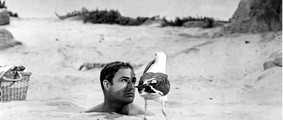Marlon Brando considers a seagull for a scene in Bedtime Story in 1964. https://www.esquire.com/lifestyle/g15897154/celebrity-beach-photos-vintage/