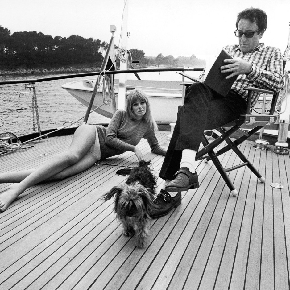 Peter Sellers chilling on his yacht with his wife, Britt Ekland. (1967)
