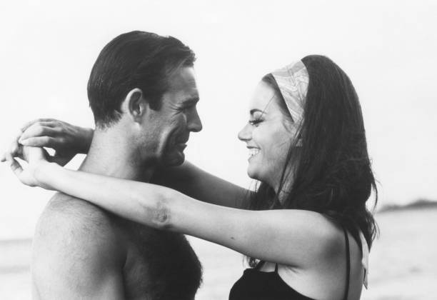Claudine Auger embracing Sean Connery on beach from the 1965 James Bond film ‘Thunderball’. (Photo by Screen Archives/Getty Images)