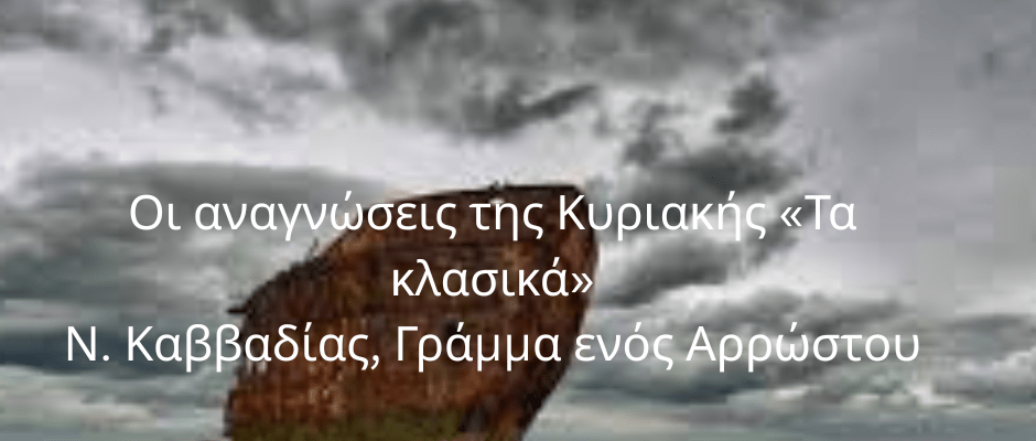 Οι αναγνώσεις της Κυριακής…Νίκος Καββαδίας 29/03/2025 // 0 Comments https://podcasts.imaginistes.club/wp-content/uploads/2025/03/Grammaenosarrostou.mp3 Διαβάζει η Μαριαλένα Γκογκίδη Νίκου [...]