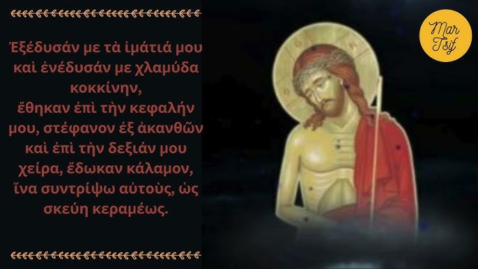 «Ἐξέδυσάν με τὰ ἱμάτιά μου» 17/04/2025 // 0 Comments Το ιδιόμελο «Ἐξέδυσάν με τὰ ἱμάτιά μου» είναι το δοξαστικό των αίνων της Ακολουθίας των [...]